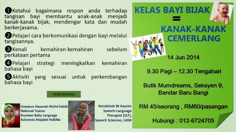 Sertai perbincangan dan penerangan mengenai fakta-fakta tersebut dengan menyertai KELAS BAYI BIJAK yang dianjurkan dengan kerjasama antara saya dan Puan Uswatun Hasanah.
